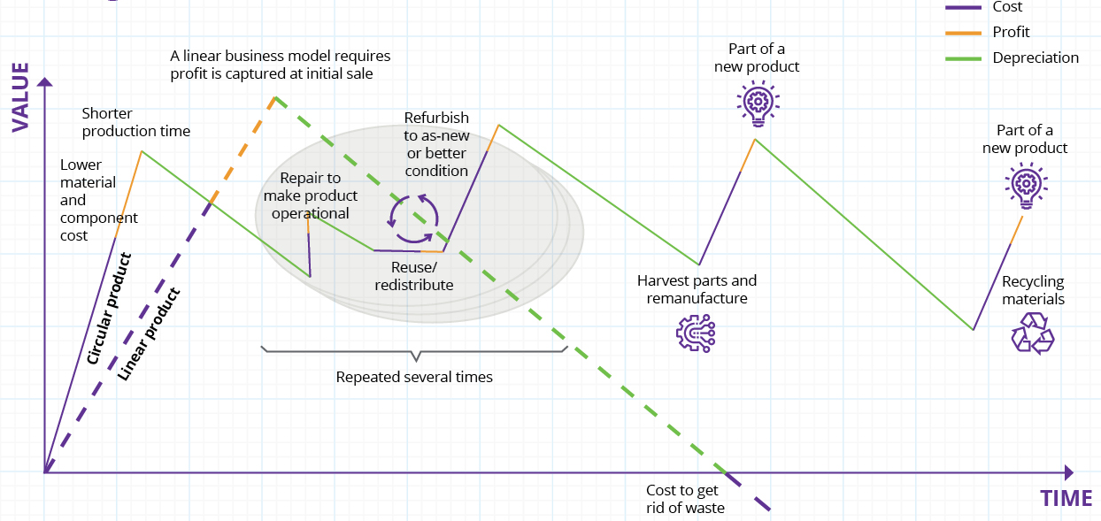 - Benefits of a “circular” business model above a “linear” or traditional approach include better customer support, lower costs and greater resilience, among other advantages.