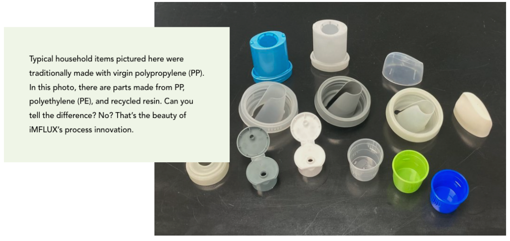 Using different materials in one package is not the only answer for cost-effective performance. Injection molding innovations, like iMFLUX, offer a unique platform where alternative materials can be used in typical PP injection molding applications. Because the iMFLUX system changes the way the injection molding machine operates, by lowering the pressure of the injection process, HDPE can now be used in applications where only PP could be used historically—and without changing out expensive molds.