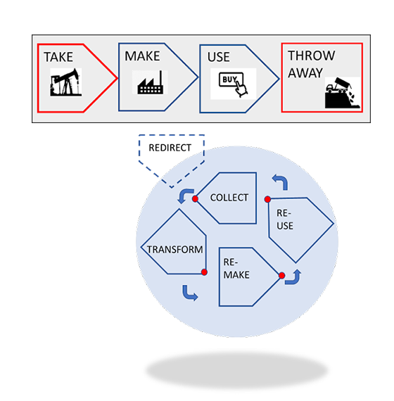 This resource is available for use by people, animals, vegetation-all who need it. If left to function properly, the water evaporates, precipitates, runs through streams, is filtered by earth, and returns to the ocean ready to evaporate again. All along that cycle, it serves a variety of purposes, but there are systems in place to ensure constant cleaning and replenishment. The resource is not diminished through use. Human intervention has caused some grave damage to these and other natural systems, but the point is the elegance and durability of the natural structures. To avoid scarcity of resources on the one hand (and the resulting health, equity, violence, and other impacts) and to face our ever-growing waste management problem on the other, we must re-imagine our economic systems. We must move in a direction that reduces waste and allows natural systems to regenerate and replenish themselves: we need to live in circular, self-sustaining systems, just like those of nature.