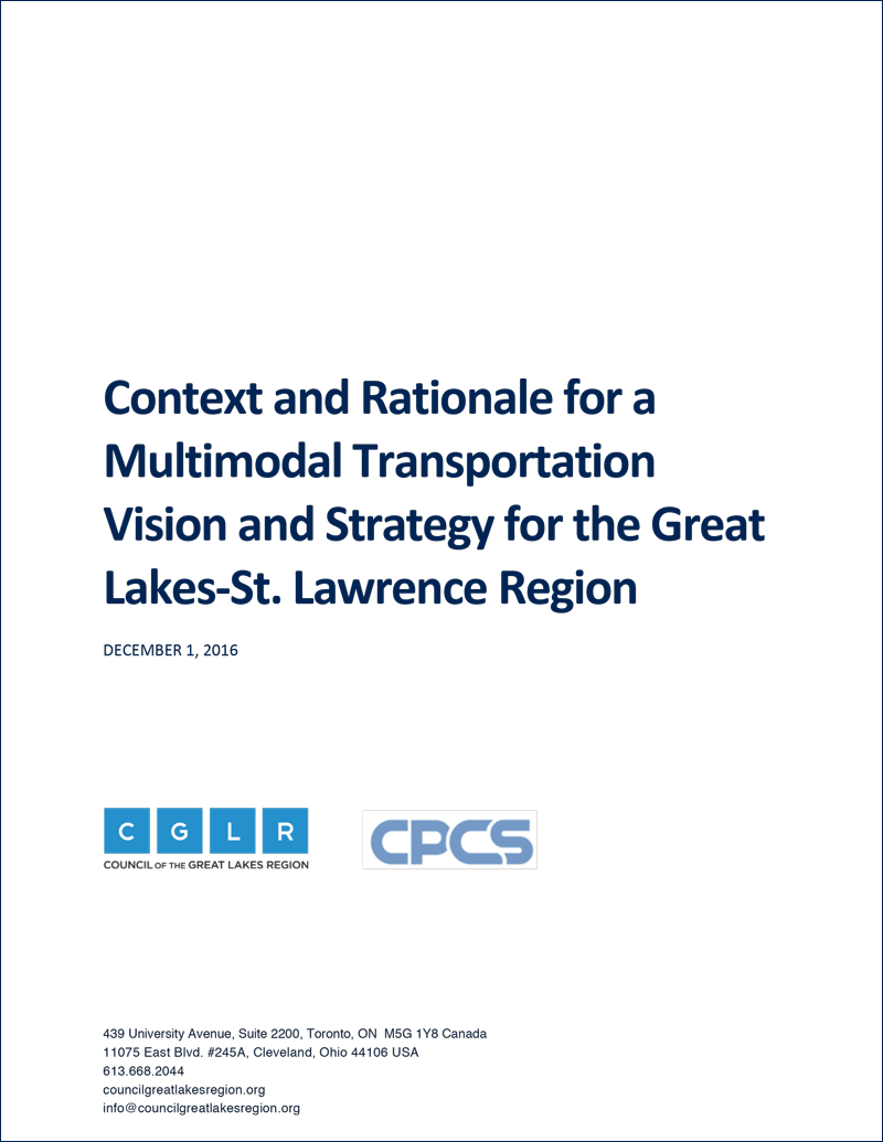 This short paper – on the context and rationale for a multimodal transportation vision and strategy for the Great Lakes and St. Lawrence Region – is the first in a series of papers that will lead to the development of a multimodal transportation vision and strategy for the Region that will be released at the Great Lakes Economic Forum in Detroit-Windsor this April.