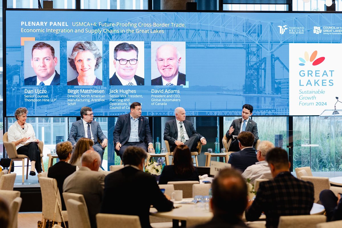 The Forum featured a timely panel on the future of the United States-Mexico-Canada Agreement (CUSMA), which will be up for reapproval in 2026. Panelists emphasized that CUSMA has provided stability and predictability for businesses, particularly in the automotive sector, which is crucial for the Great Lakes region.