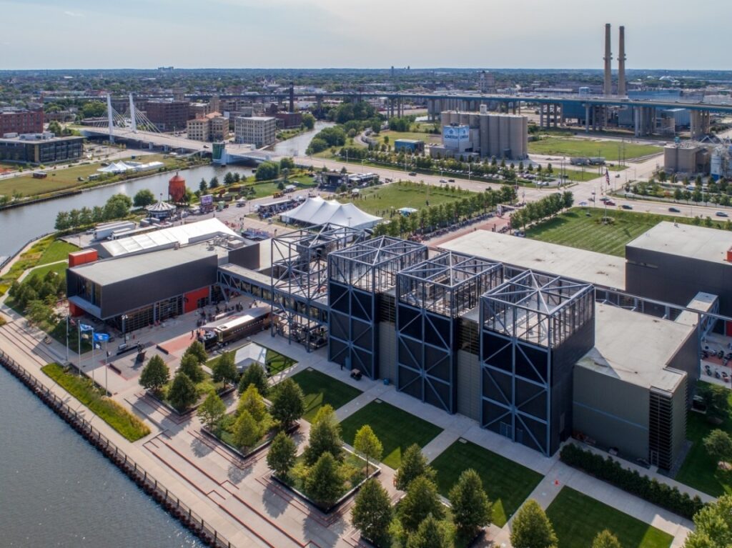 Just to the south, the Global Water Center – home to The Water Council and numerous water-related businesses – opened in 2013 in a converted warehouse along the Menomonee River.