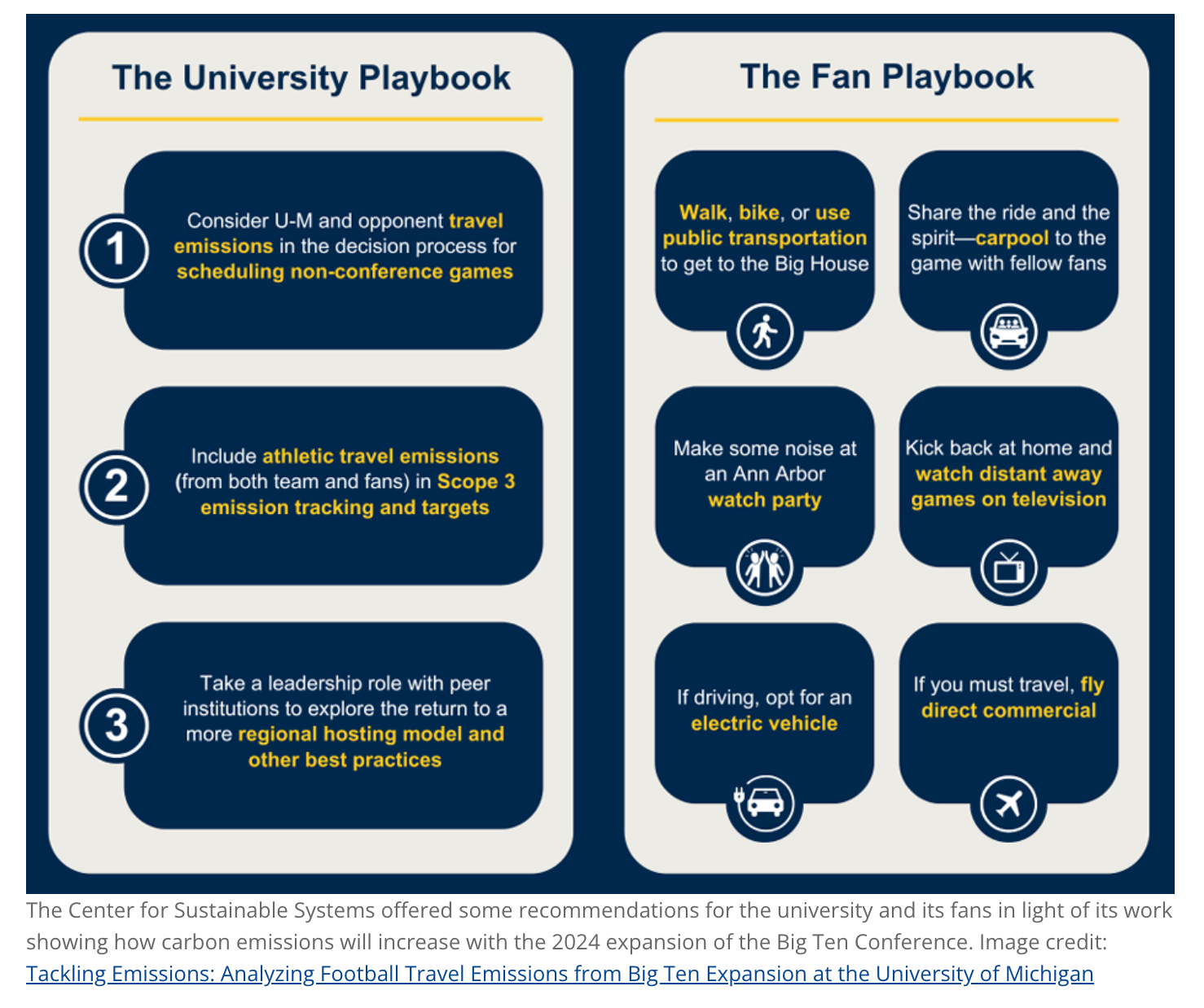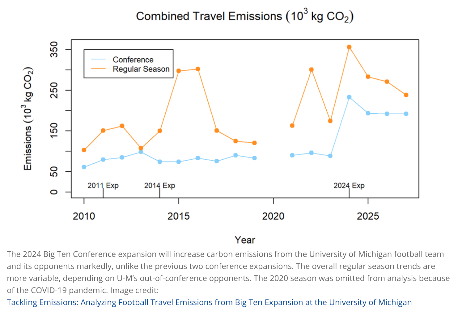 This article was originally published on University of Michigan News and is revised for publication on this website with permission: https://news.umich.edu/big-ten-expansion-will-double-carbon-emissions-from-u-m-football-team/