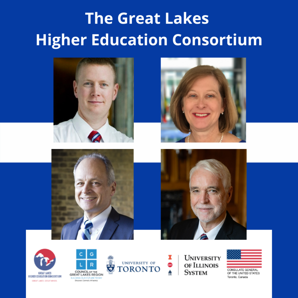 TORONTO, Ontario and CHICAGO, Illinois – Today, the Council of the Great Lakes Region (CGLR), the University of Toronto, and the University of Illinois System signed a Memorandum of Understanding officially creating and launching the binational Great Lakes Higher Education Consortium, which will provide a unique platform for higher education institutions to connect across borders to discuss a range of regionally significant socioeconomic and environmental issues. The creation of the Consortium is a key recommendation from the Council’s recent report, Great Lakes, Great Minds: Setting the Stage for Higher Education, Business, and Government Collaboration in the Great Lakes to Drive Talent Development, Innovation & Entrepreneurship, which was funded by the United States Mission in Canada.